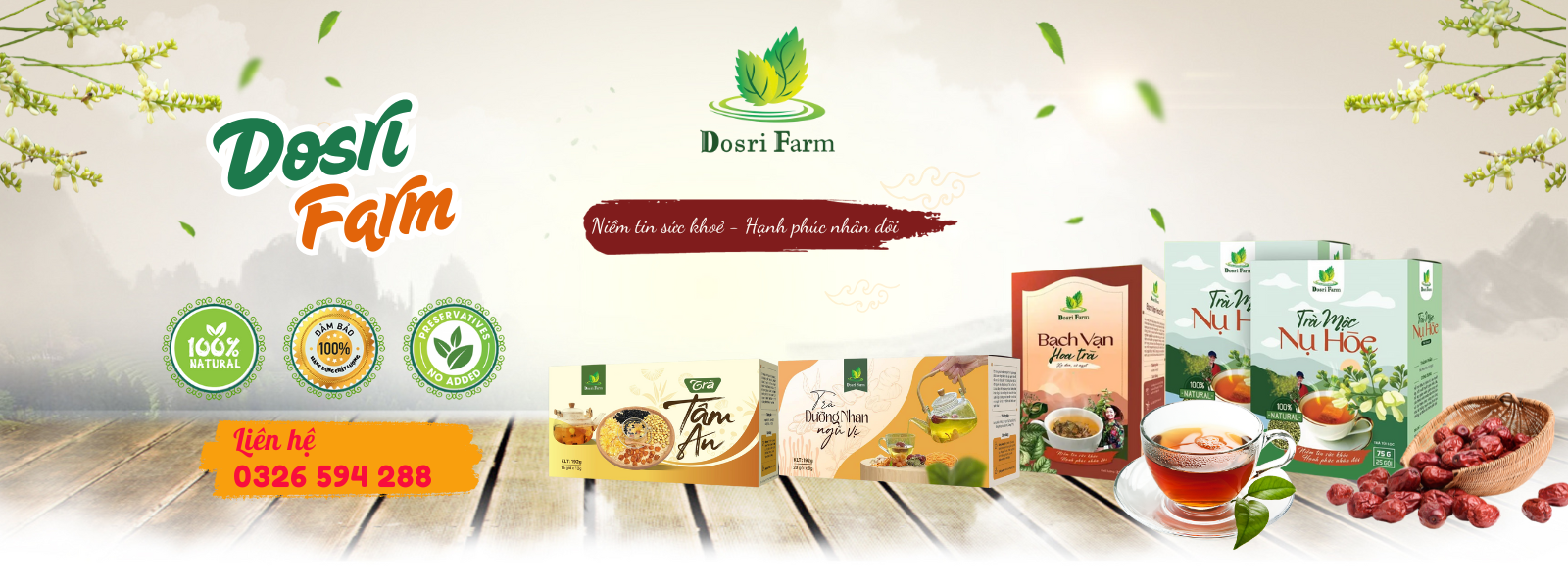 Công ty TNHH Dosri Farm tọa lạc tại tỉnh Gia Lai – vùng đất có khí hậu trong lành, thổ nhưỡng phù hợp cho cây dược liệu và thảo mộc phát triển. Với tâm huyết lan tỏa lối sống an lành, Dosri Farm chuyên cung cấp các dòng trà thảo mộc thiên nhiên như: Trà Tâm An, Trà dưỡng nhan ngũ vị, Trà mộc nụ hòe, Bạch Vạn hoa trà…